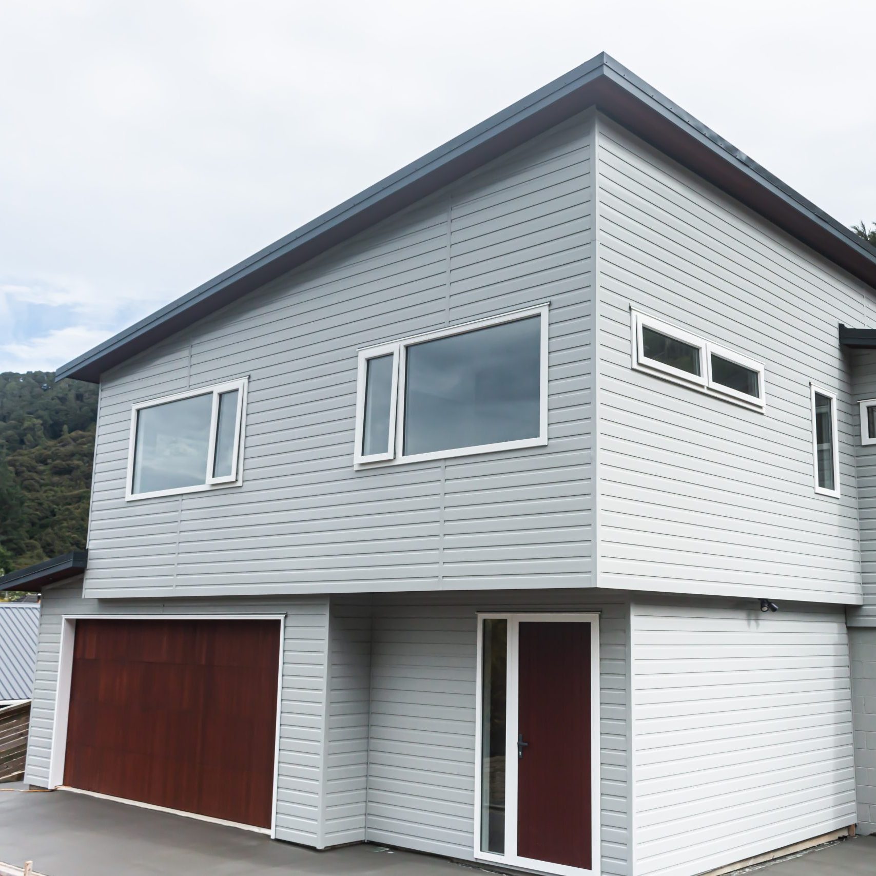 This stunning new home is exactly the type of home we love to build. Nestled on the side of a steep slope we carved the hillside out and constructed this 3 bedroom, 2 bathroom home with a built in 2 car garage. Featuring UPVC cladding, UPVC windows and cedar finishing to bring some warmth to the exterior.